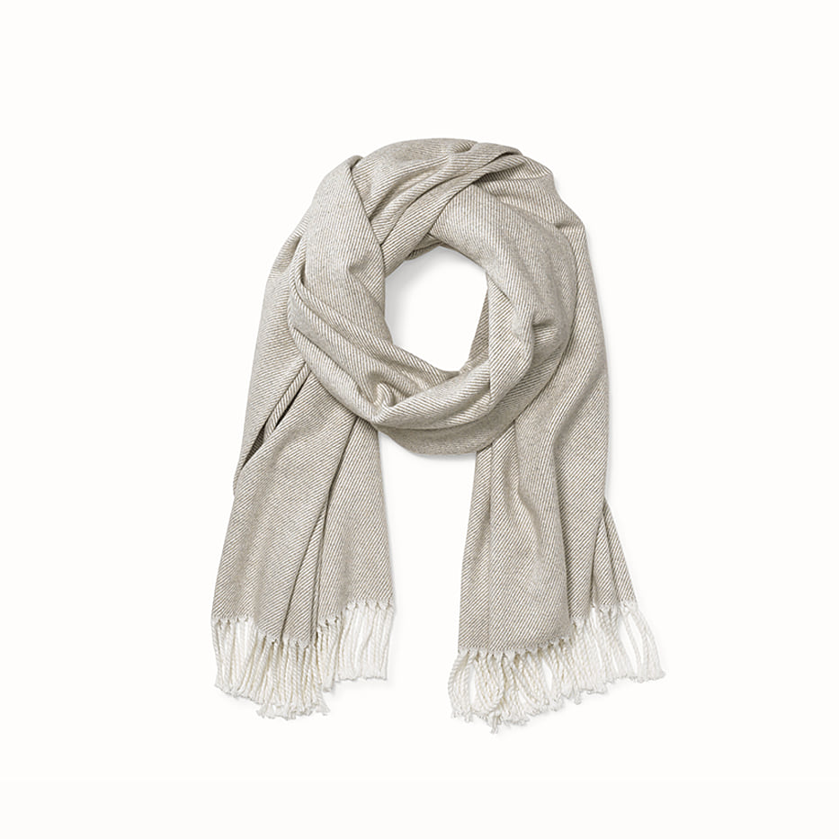 This mid-weight scarf is made in a two-tone twill weave for a sophisticated heathered effect. It starts with the highest quality threads sourced from the finest long-staple 100% organic cotton on earth. To further set it apart, it’s brushed for a luxuriously soft hand-feel, and finished with twisted fringe edges.