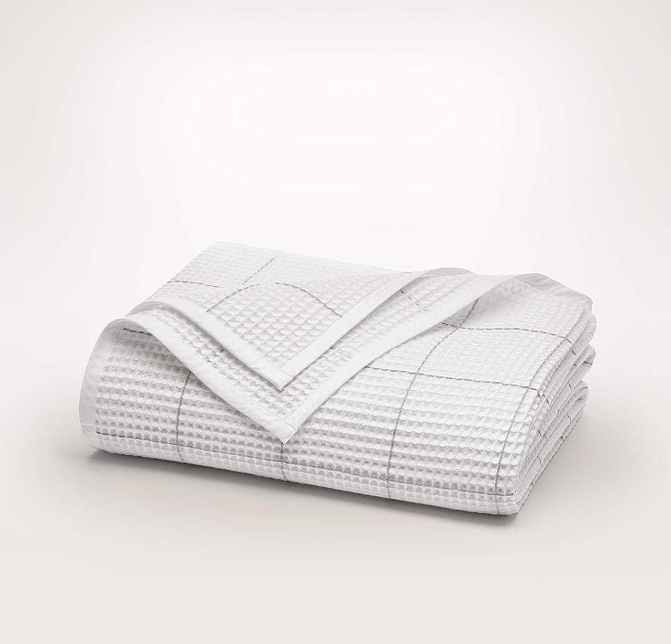 White/Pewter Waffle Fine Windowpane Bed Blanket